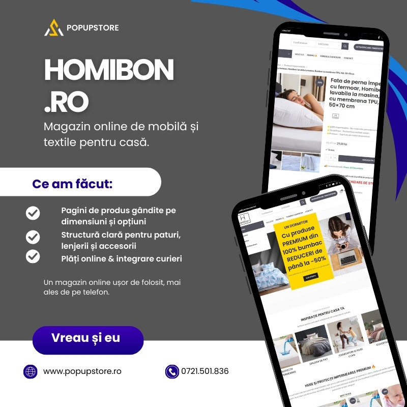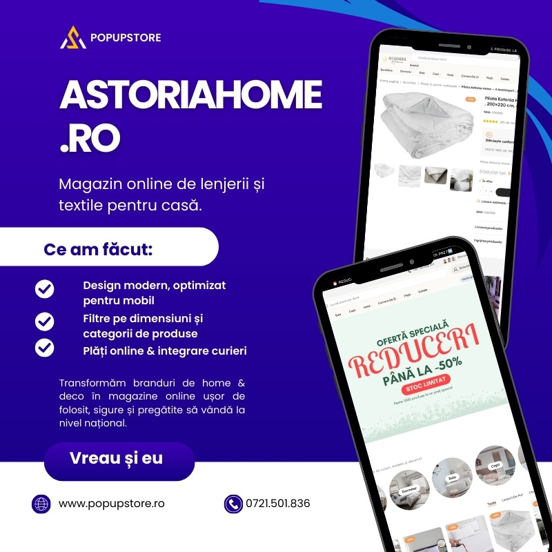 Un magazin online personalizat îți permite să vinzi 24/7, oriunde în țară (sau în afară), cu costuri mult mai mici decât un spațiu fizic. Poți urmări ce se vinde, poți face promoții, poți automatiza facturarea și livrarea și poți îmbunătăți constant rata de conversie pe baza datelor reale din platformă.